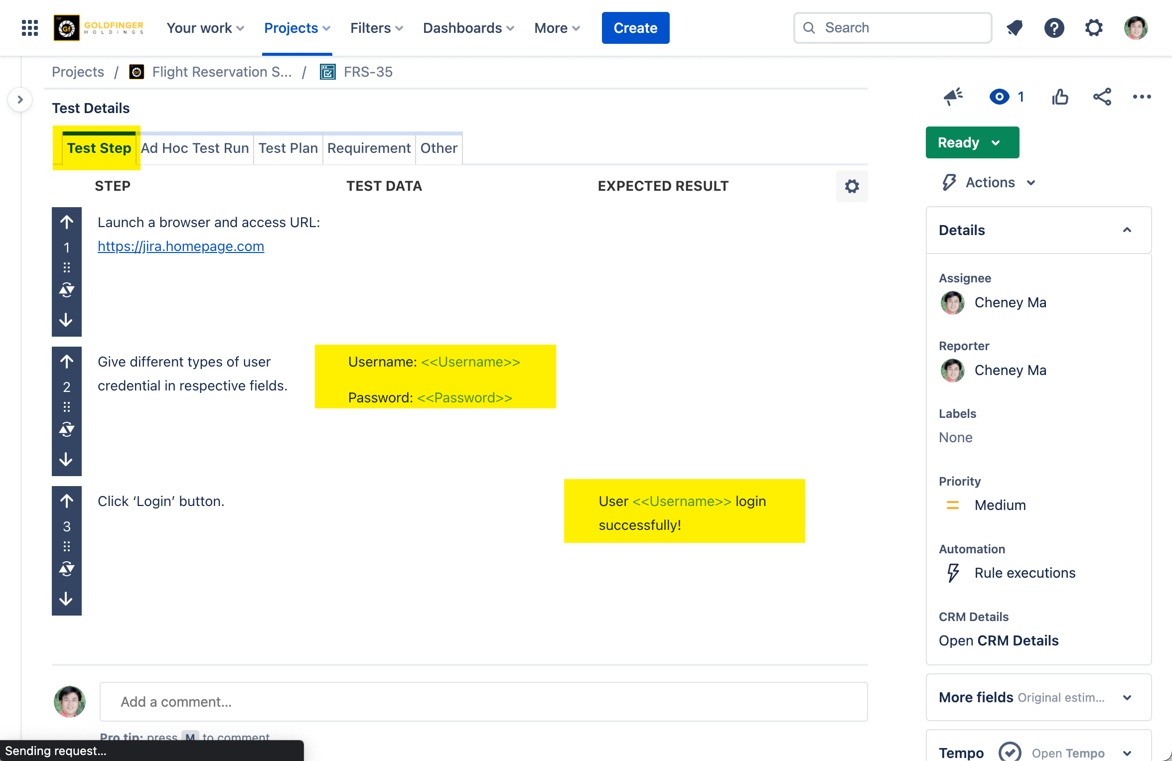 For example, suppose you are testing a login operation for a Jira website. Your steps might be as follows: